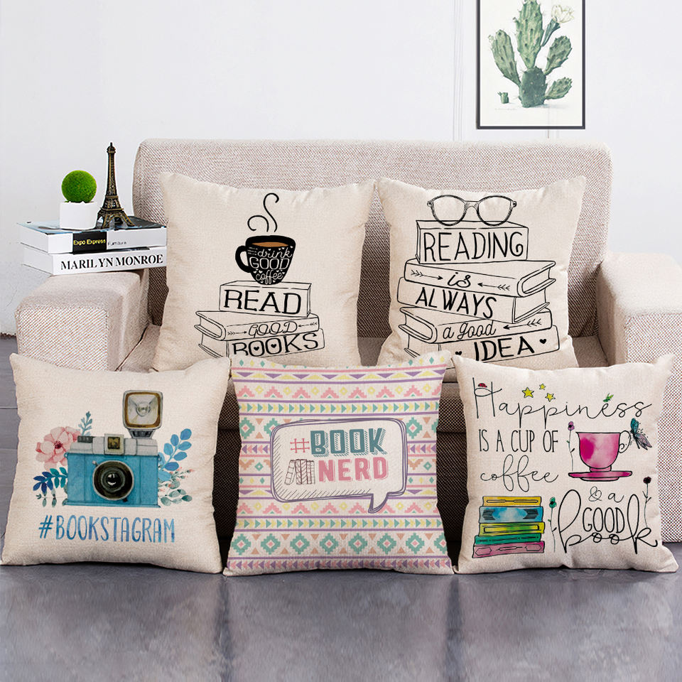 Happy Days bel tè leggendo buoni libri parole copricuscino decorativo lettere stampa divano federa