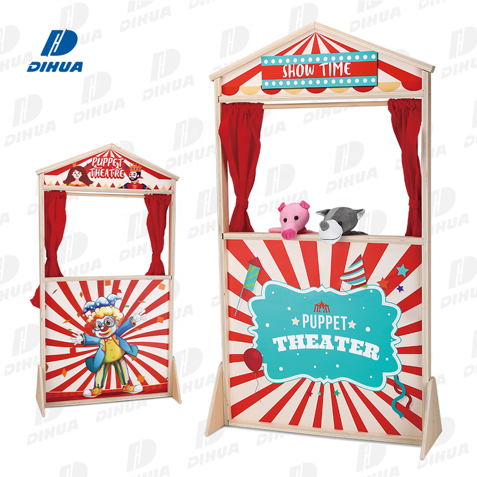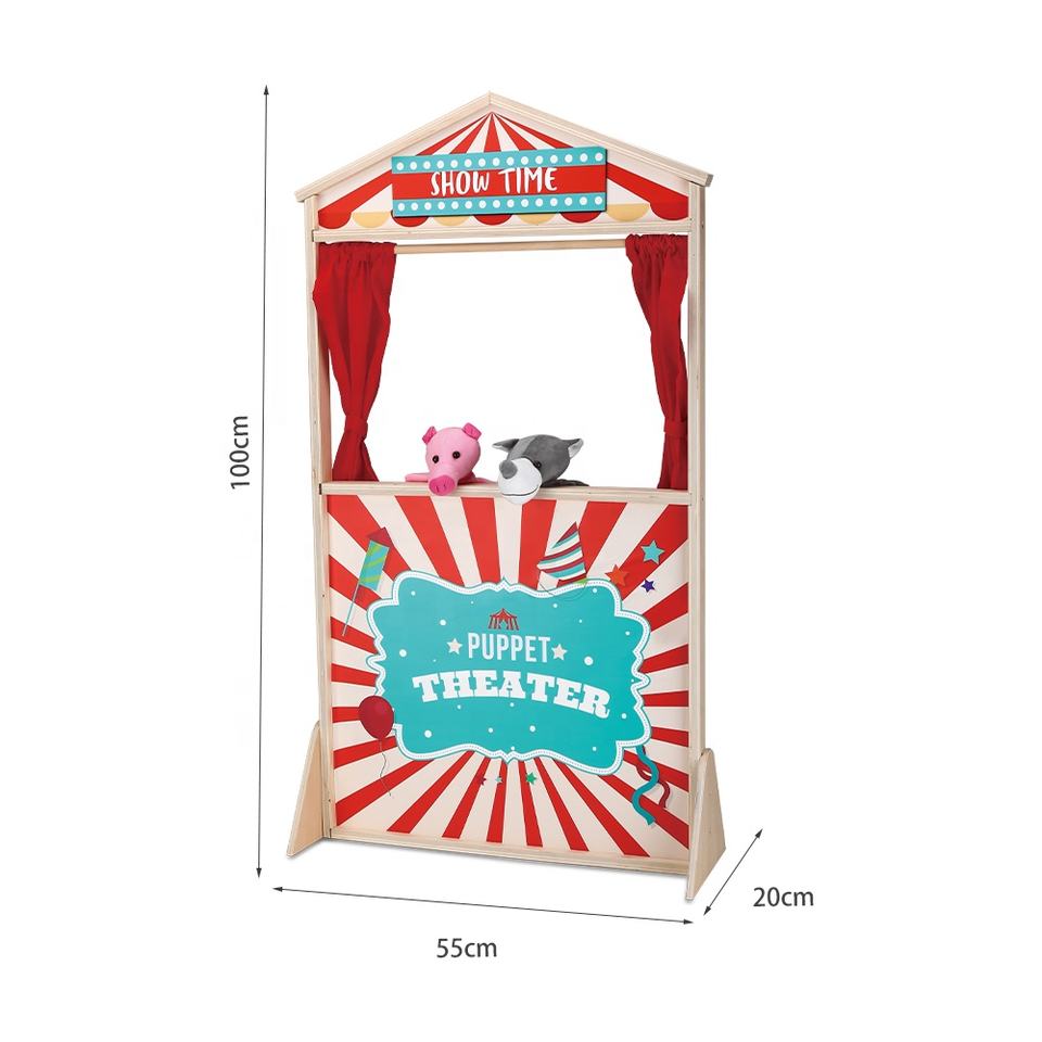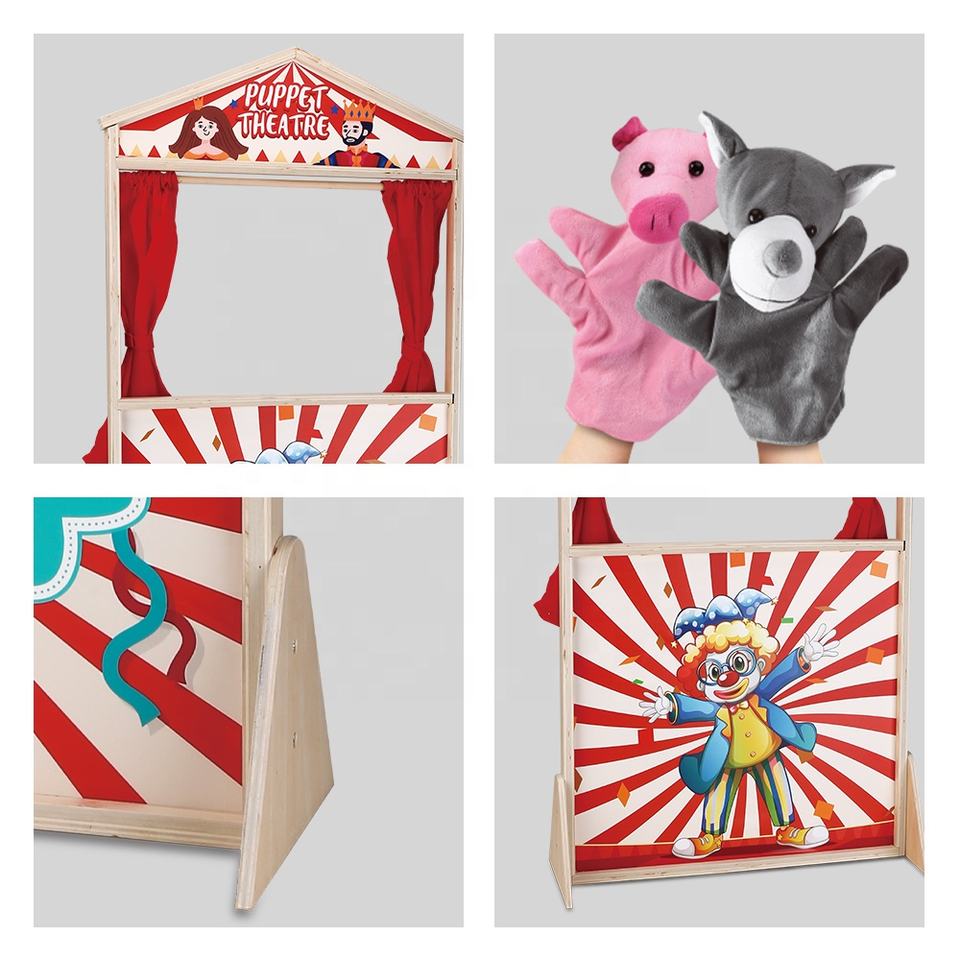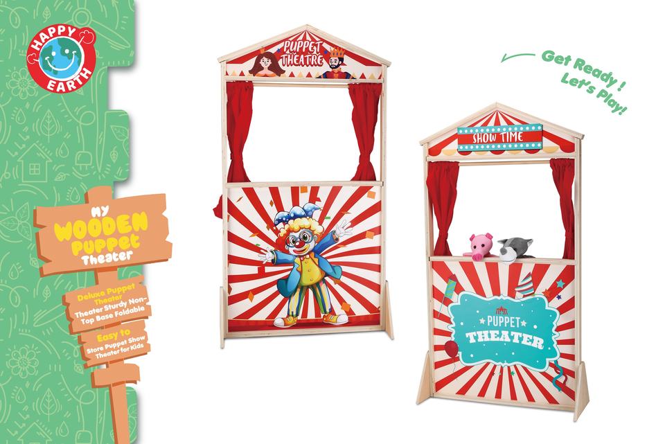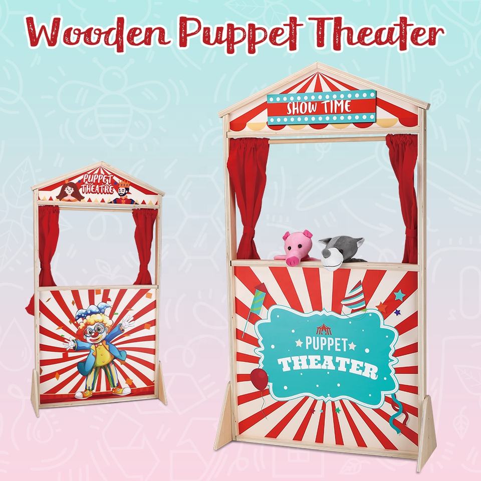 Happy Earth - Wooden Playhome Theater Puppet Hand Puppet Show Educational Role Play Toy Wooden Theater with Curtains for Kids