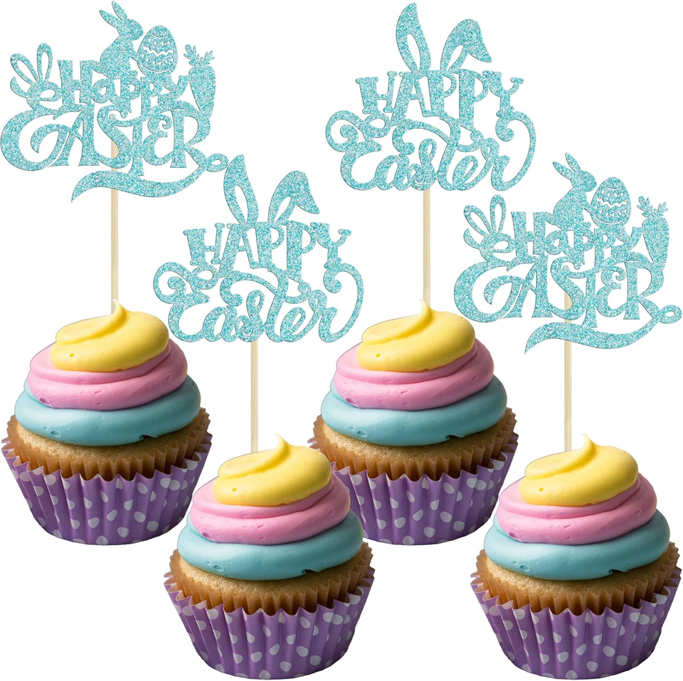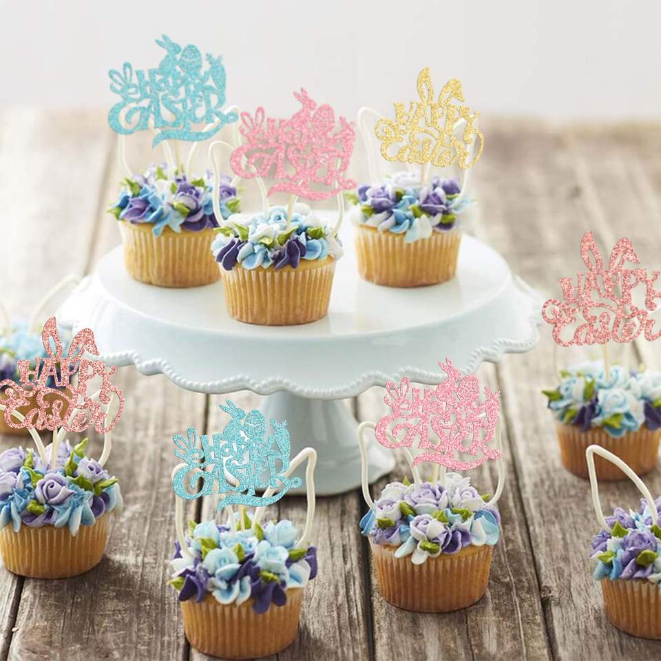 Decorazioni per Cupcake Pasquali, Topper Glitterati a Forma di Coniglio, Decorazioni per Torte a Tema Primaverile, Accessori per Feste