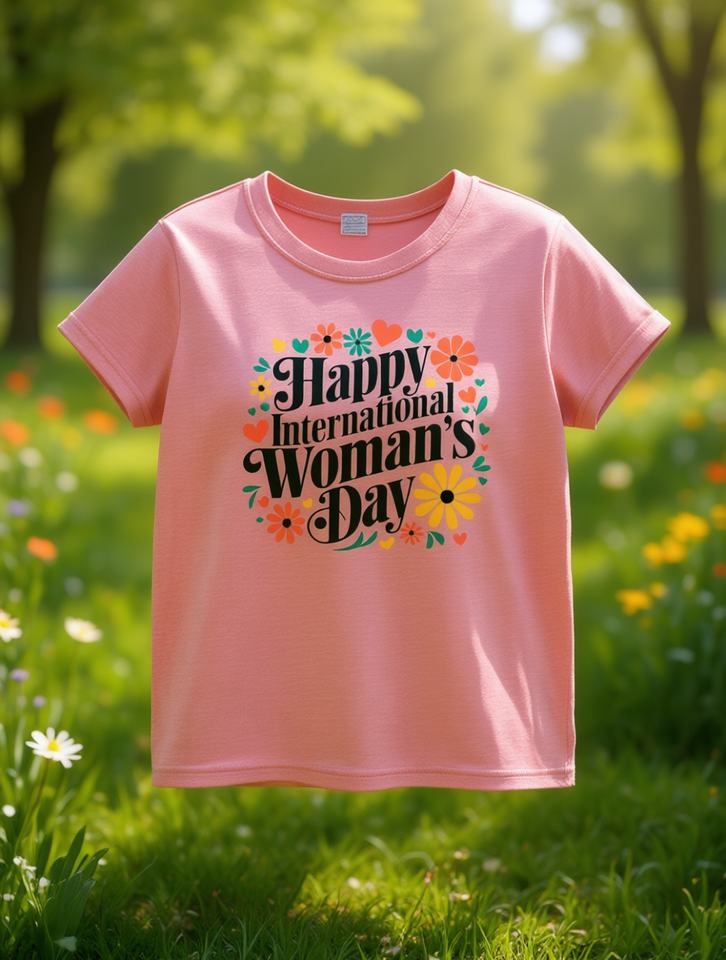 Happy International Women's Day T-Shirt For Women Short Sleeve Round Neck Floral Print 100% Cotton Vintage Style Spring Casual