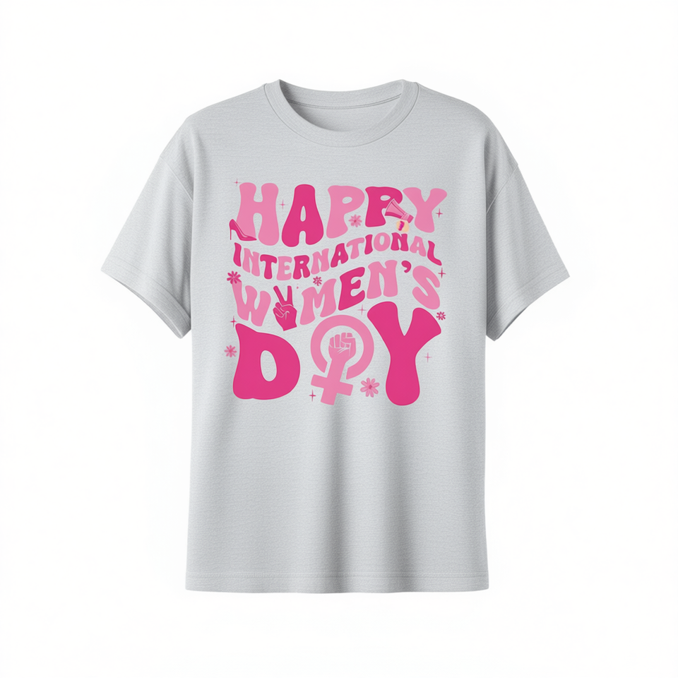 Happy International Women's Day T-Shirt For Women Crew Neck Short Sleeve 100% Cotton Pink Feminist Casual Spring Summer Shirt