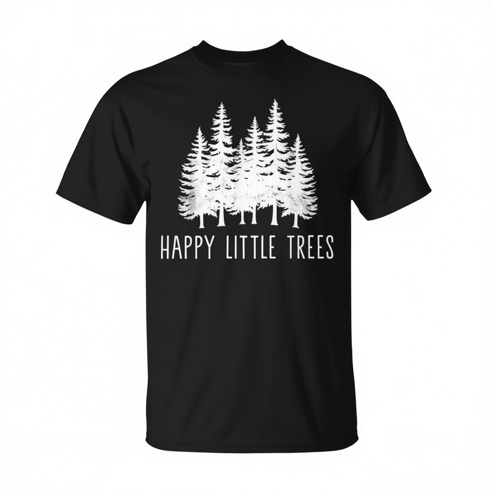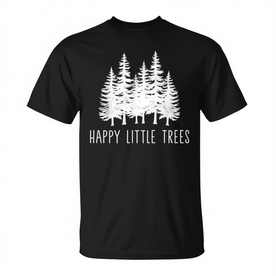 T-shirt Happy Little Trees con design Black Forest, vestibilità classica, girocollo unisex, manica corta, per adulti, promozionale