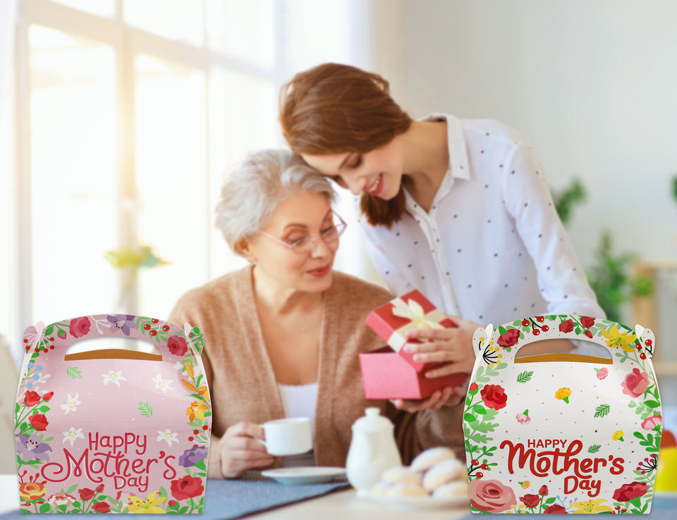 Happy Mother's Day Gift Treat Paper Boxes With Handle Floral Design Gift Goodie Candy Boxes for Mom Party Favour Supplies