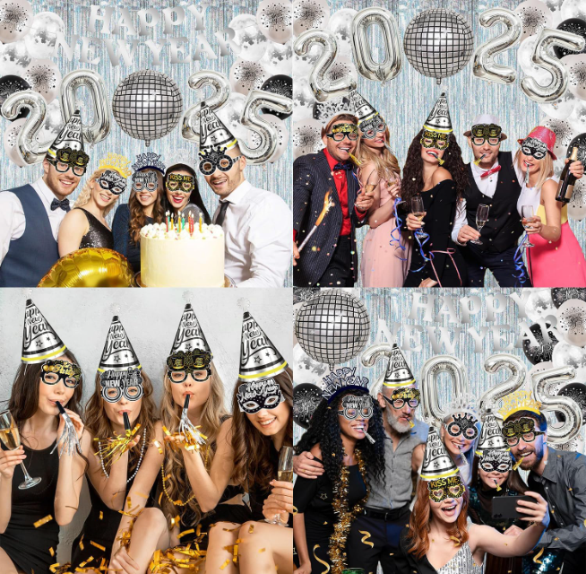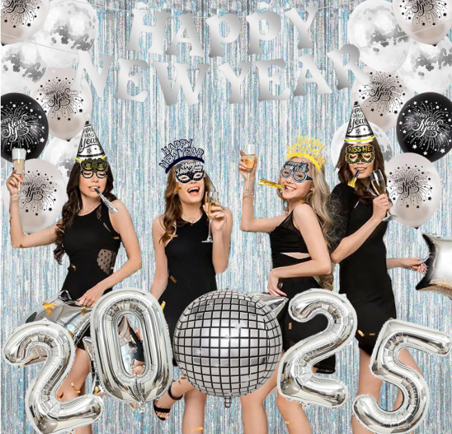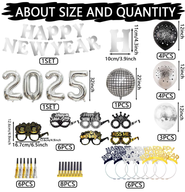 Happy New Year Hats Headbands Glasses Banner Blowouts Noise Makers 2026 Foil Balloons Curtain Printed Balloons Photo Props Decor