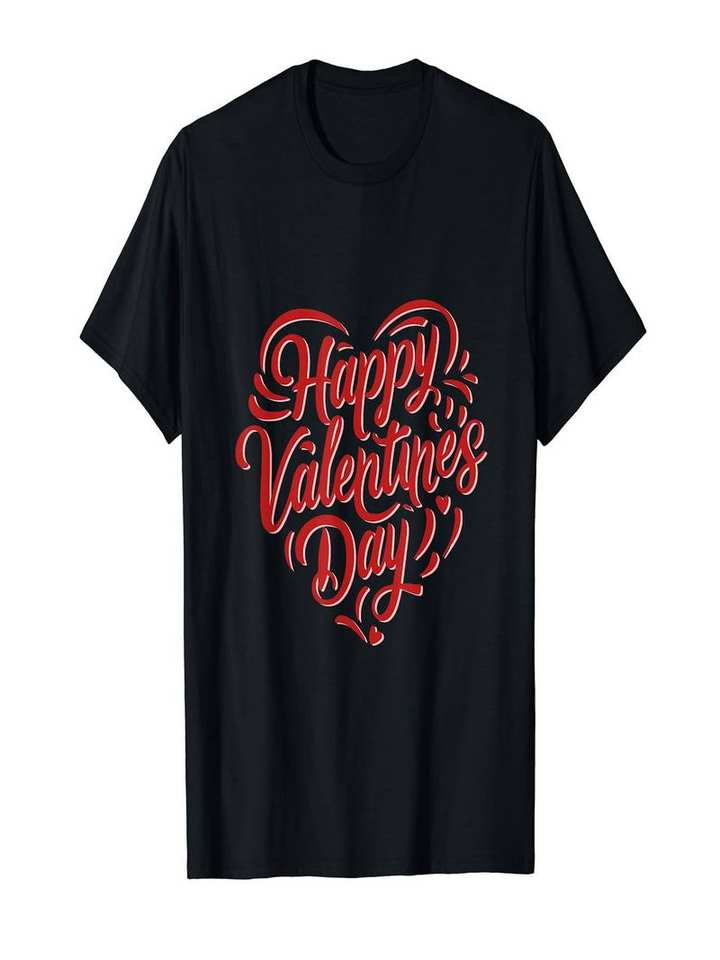 Happy Valentine's Day T-Shirt Men's Short Sleeve Cotton Casual Printed Front O-Neck Regular Fit Jersey Knitted