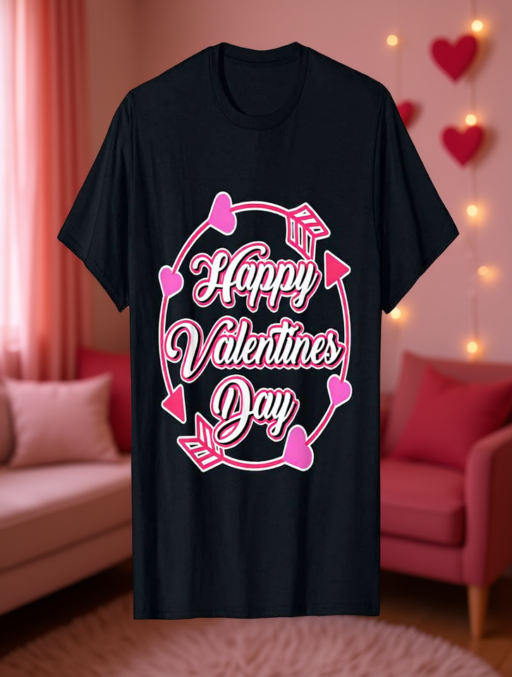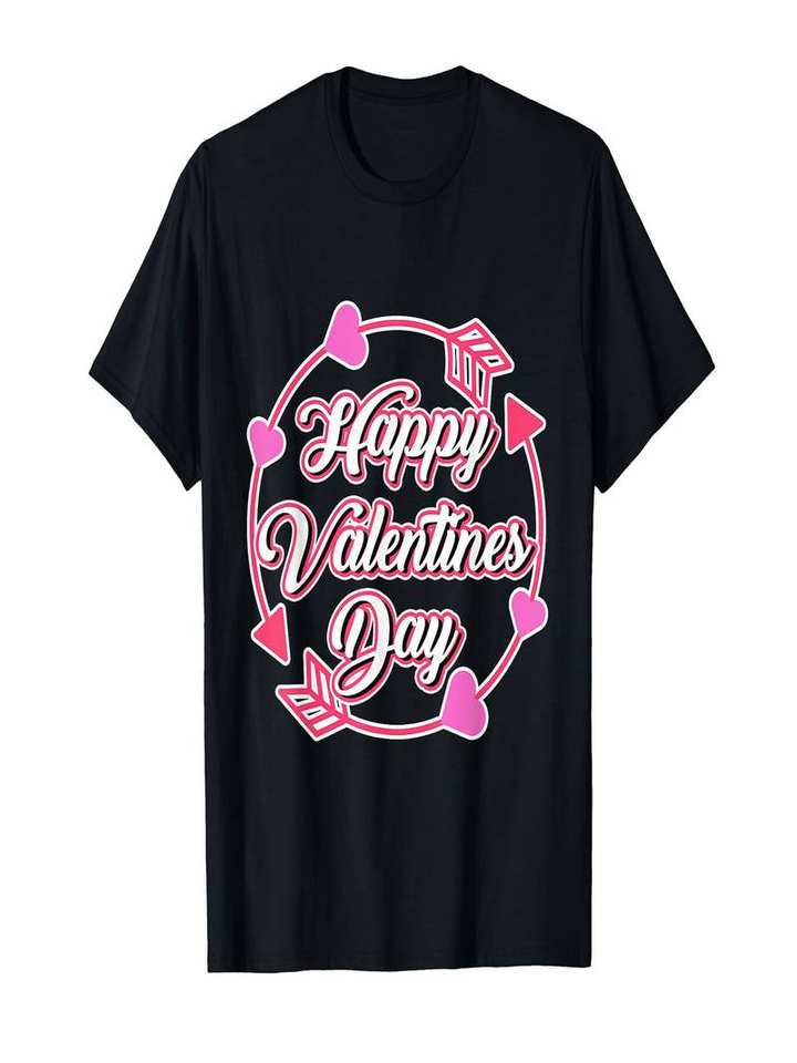 Happy Valentines Day Arrow Heart T-Shirt Unisex Cotton Crew Neck Casual Spring Summer Printed Jersey Short Sleeve
