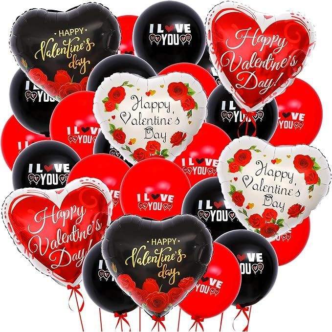 Palloncini a Forma di Cuore per San Valentino, Grandi Neri e Rossi, Confezione da 26 per Decorazioni | Articoli di Qualità per San Valentino