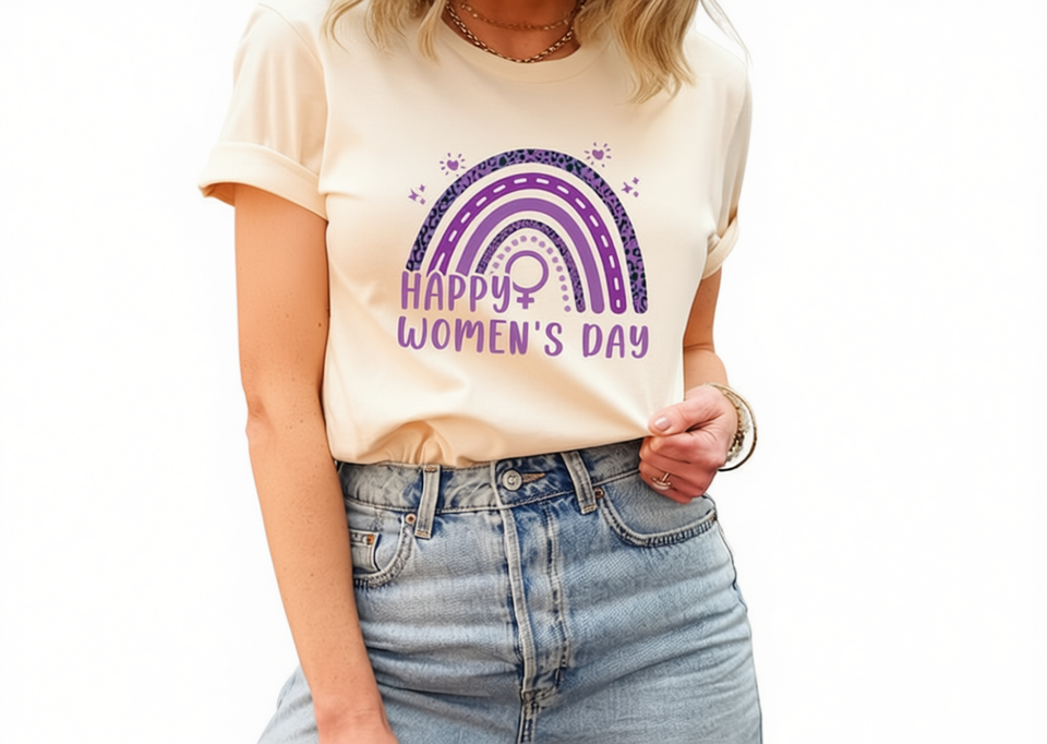 Happy Women's Day T-Shirt For Women Short Sleeve Rainbow Print Feminist Casual Crew Neck 100% Cotton Spring Summer Jersey