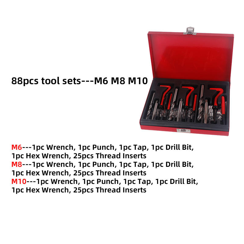 3pc Wrench, 3pc Punch, 3pc Tap, 3pc Drill Bit, 3pc Hex Wrench, 75pcs Thread insertstool includes