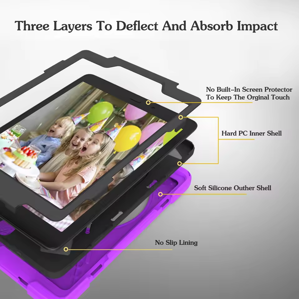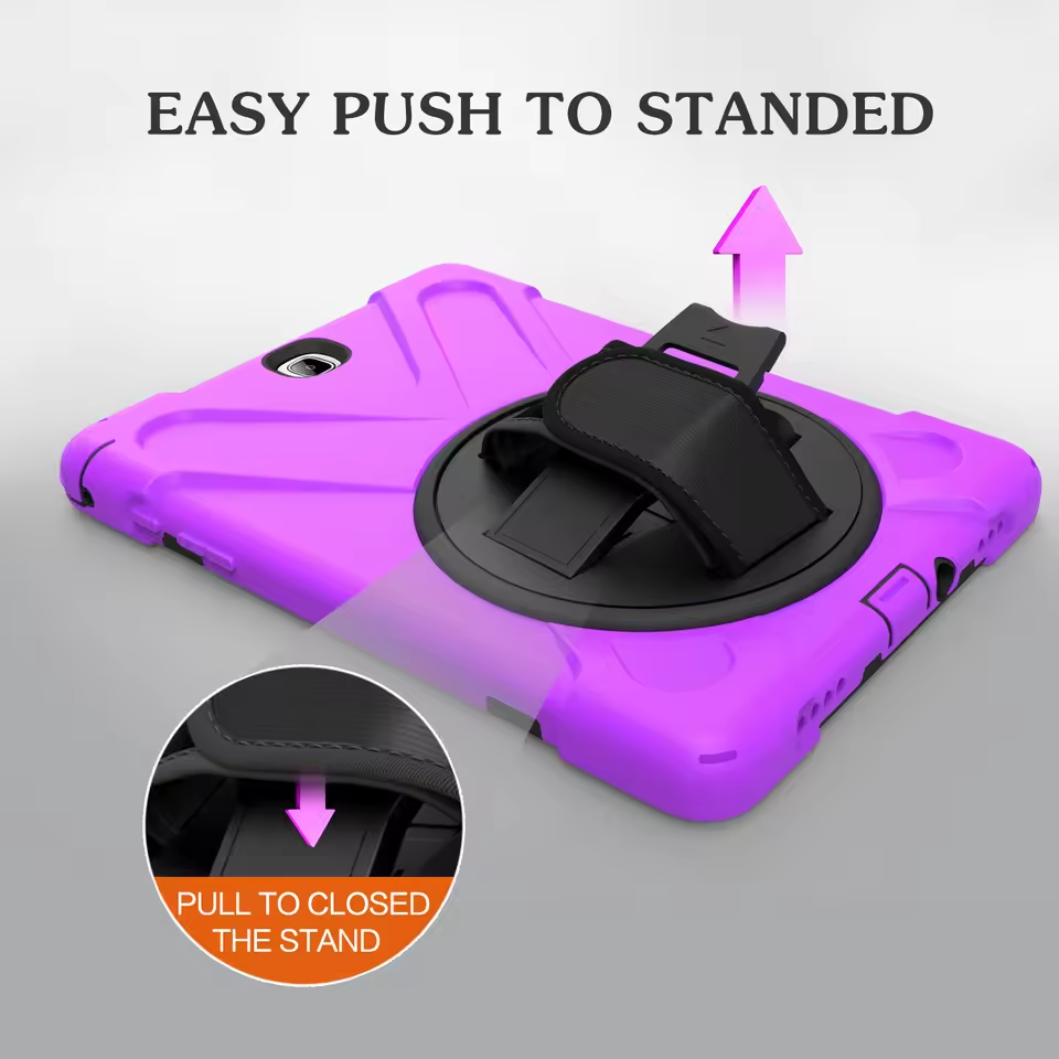 Custodia Rigida Robusta con Supporto per Tablet Samsung Galaxy Tab, Cover Ibrida Girevole a 360° con Tracolla e Cinghia da Polso