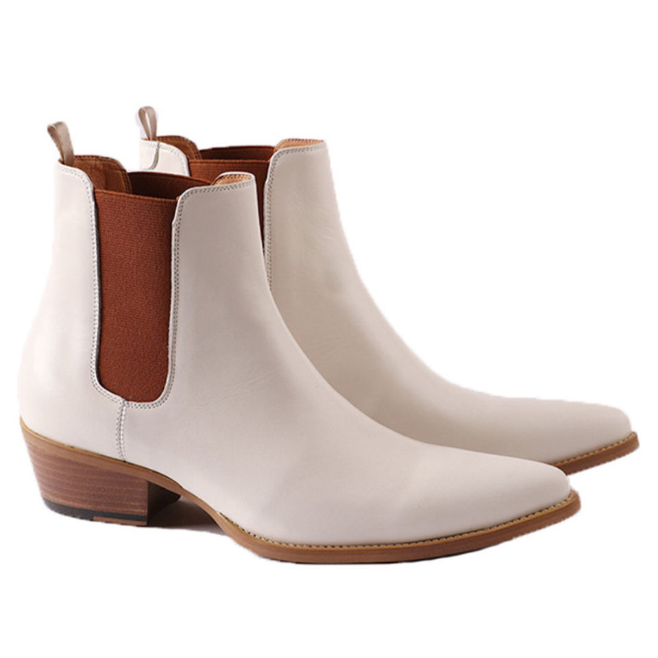 Hard-Wearing Cushioning Men's Top Leather Cow Genuine Leather Casual Chelsea Boots Slip Resistant White Cowboy Style Shoes