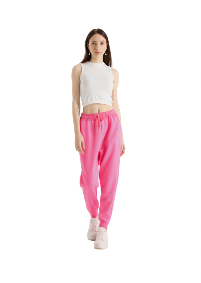 Harem Pants Women High Waist Full Length Terry Cotton Spandex Loose Fit Solid Color Drawstring Casual Spring Wear