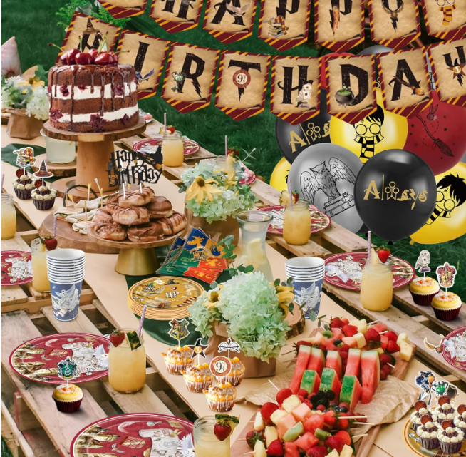 Articoli per Festa di Compleanno a Tema Harry Potter: Piatti, Bicchieri, Tovaglioli, Striscioni, Decorazioni per Cupcake, Decorazioni per Torte, Tovaglia, Palloncini Stampati con Elio
