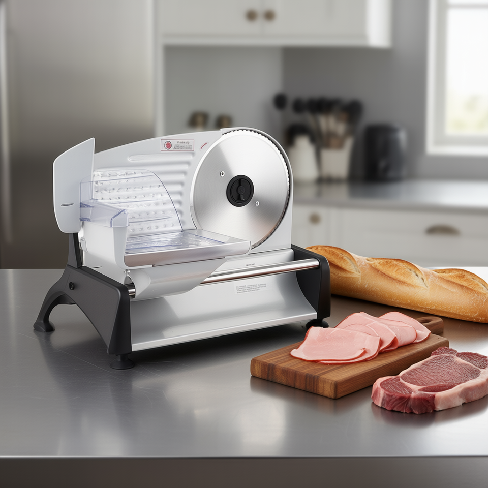 Affettatrice Elettrica Haus-10 con Lama in Acciaio Inox da 7,5 Pollici, Spessore Regolabile 0-0,6 Pollici, Semi-Automatica per Salumi, Prosciutto e Bistecche
