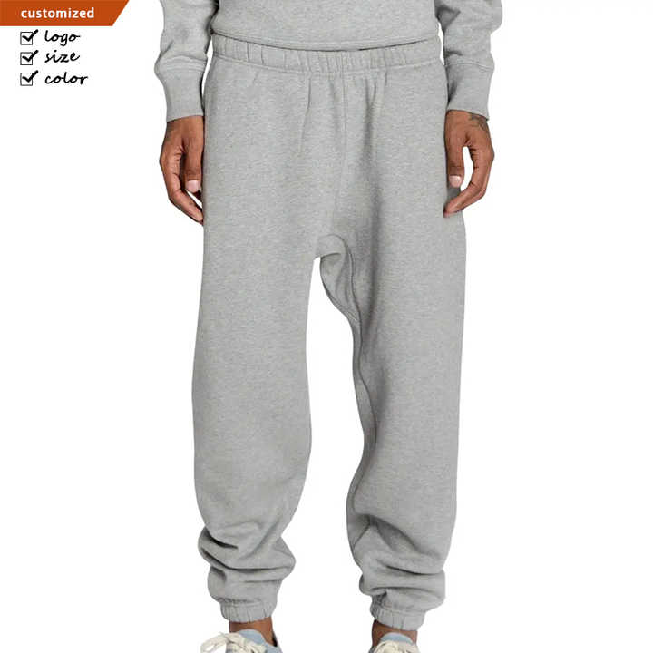 Haute Couture Men Solid Grey Fleece Sweatpants Casual Joggers with Elastic Waistband Cuffs Plain Heavy Cotton Lounge Trousers