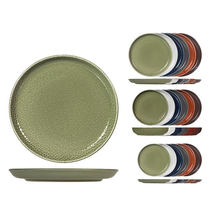 Set di 18 Piatti da Tavola in Gres Havana, Forma Nordica, Colori Assortiti