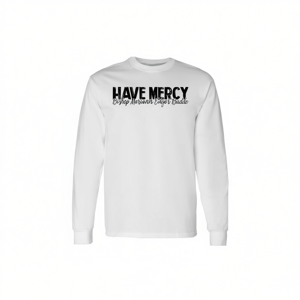 T-shirt a maniche lunghe Have Mercy Bishop Mariann Edgar Budde, unisex, in cotone, girocollo, regalo religioso per la chiesa