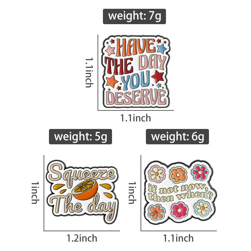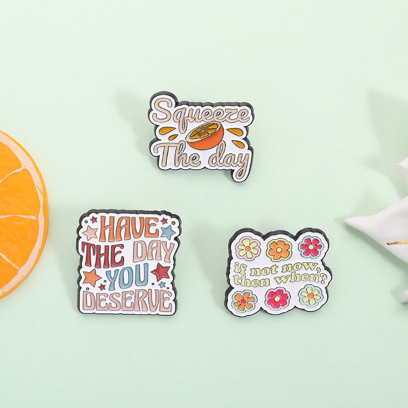 Spille Smaltate con Citazione Ispirazionale 'Have the Day You Deserve', Distintivi 'Squeeze the Day', Badge per Zaino, Gioielli Regalo