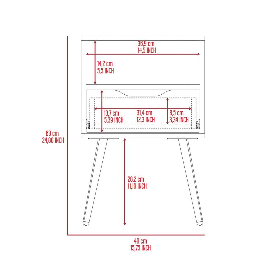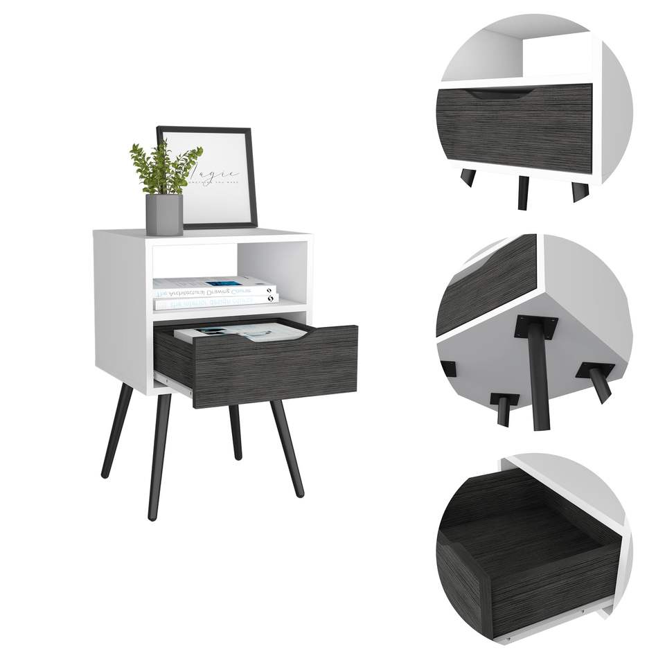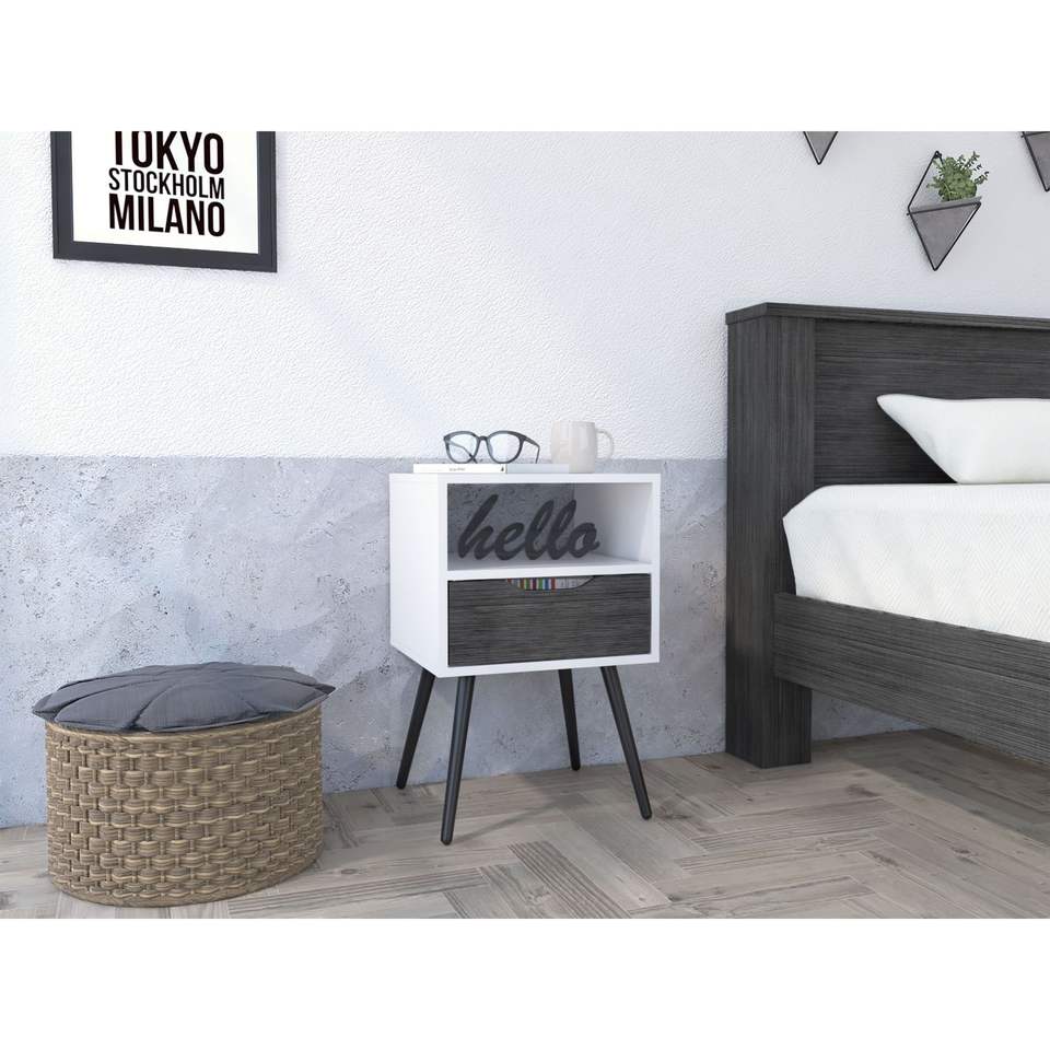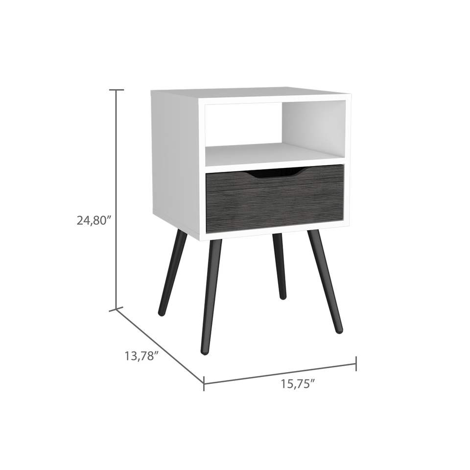 Haverson Smokey Oak and White 1-Drawer 1-Shelf Nightstand Modern Style Nightstands