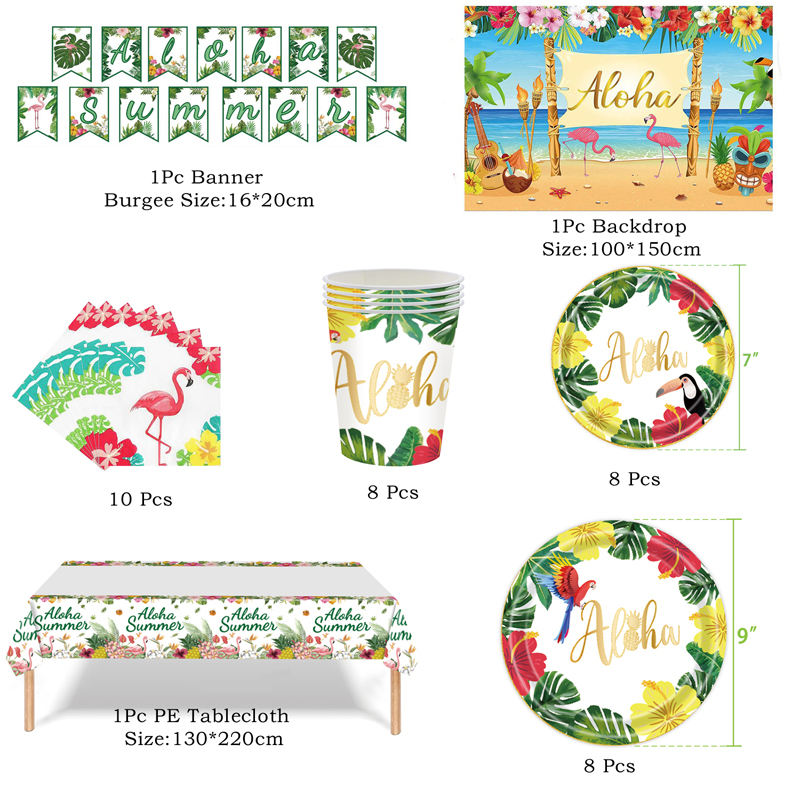 Hawaii Kids Birthday Theme Party Supplies Aloha Summer Paper Plate Kits for Decorations