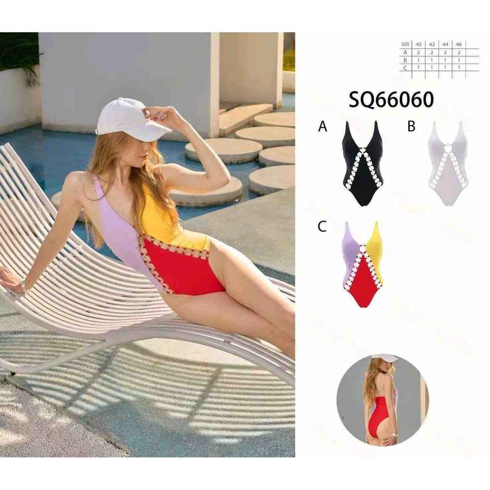 Costume da bagno intero HDJ taglie forti, monokini asimmetrico a vita alta con blocchi di colore, da donna 44 46 48 50 52 54 56