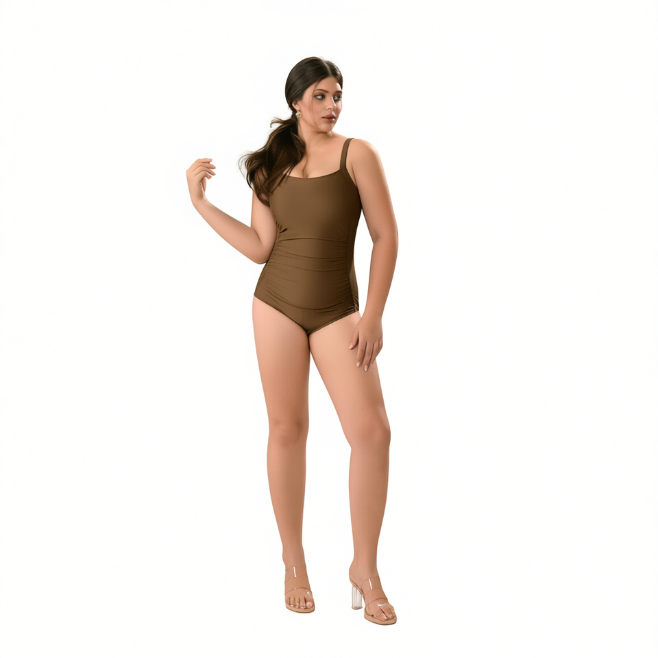 Costume da bagno intero Hdj Plus Size con controllo pancia, scollo quadrato, tinta unita, per la spiaggia BZ77006