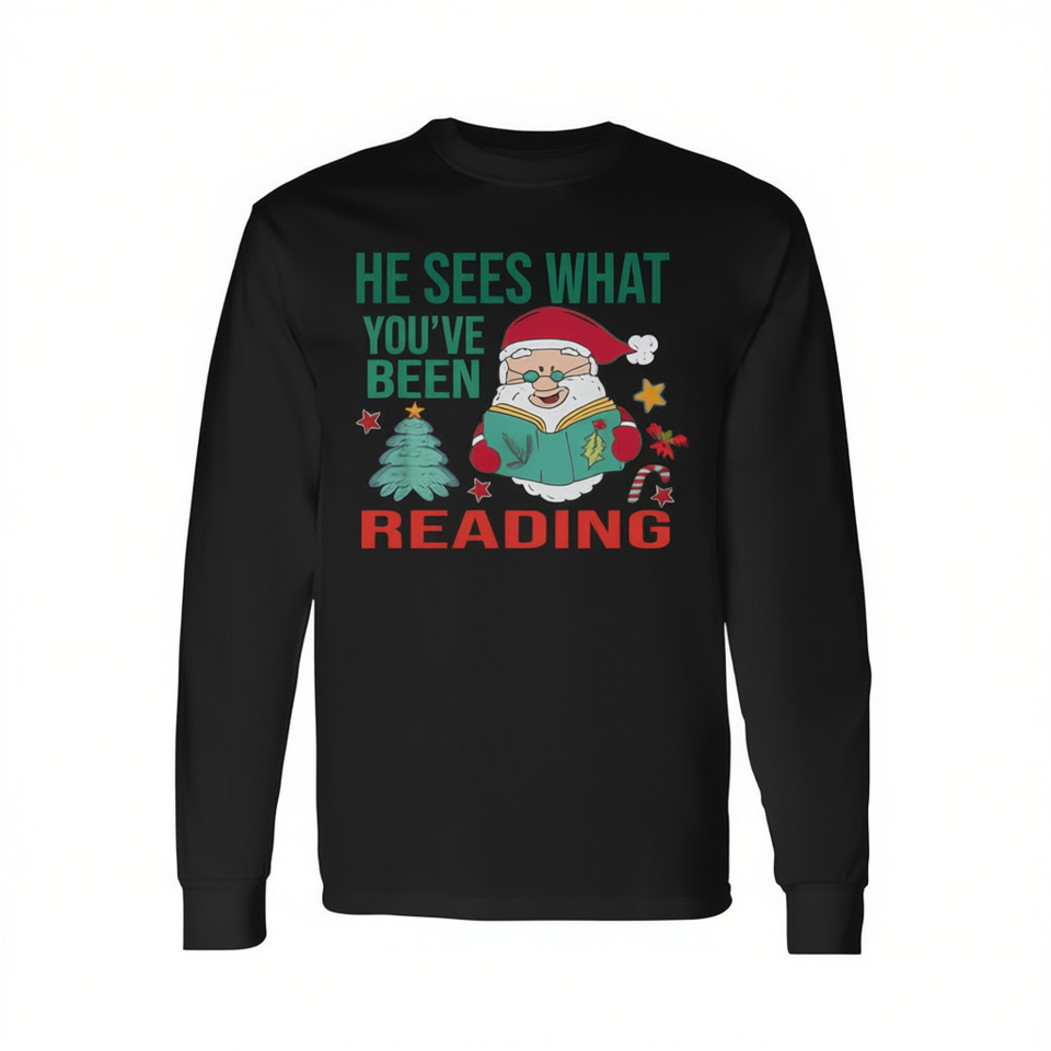 Lui vede ciò che stavi leggendo - T-shirt natalizia a maniche lunghe di Babbo Natale