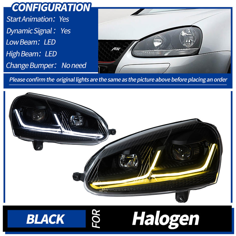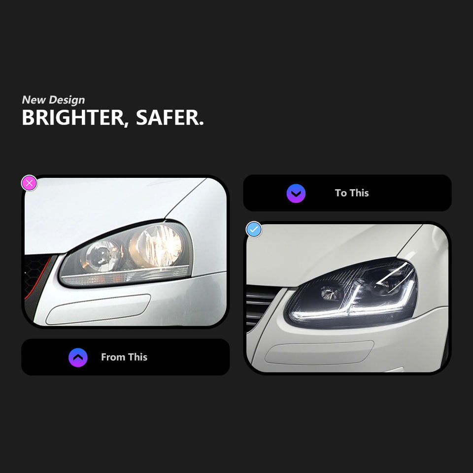 Headlight Assembly LED Headlight Daytime Running Light 12V for Volkswagen Golf 5 Generation High 5MK5 Upgrade Modified 7.5