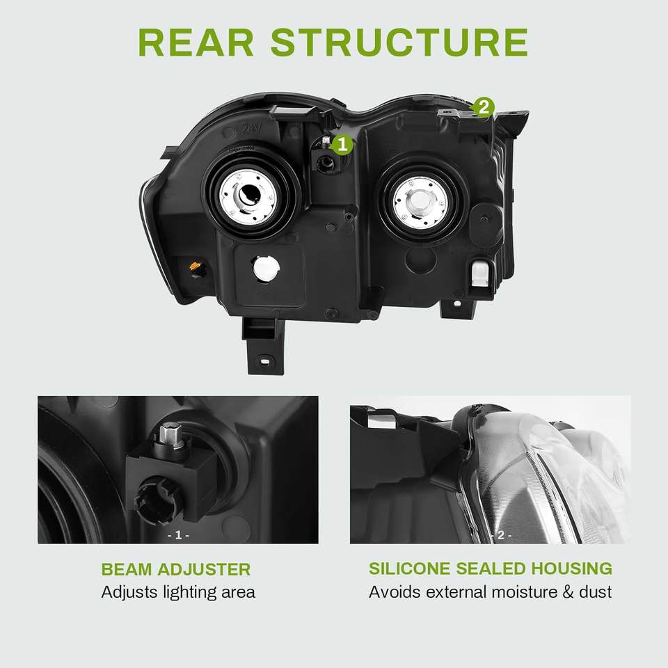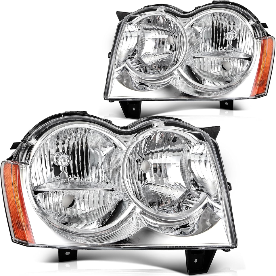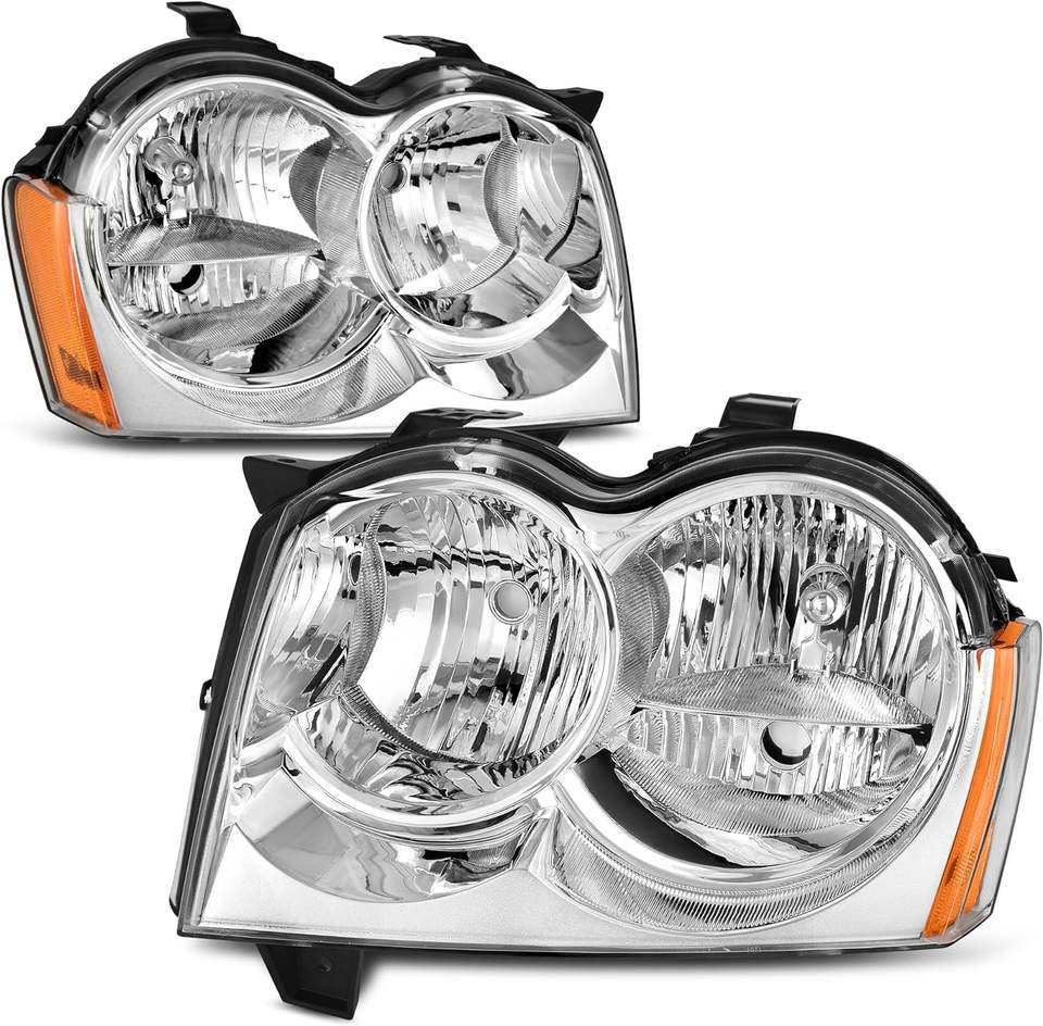 Gruppo fari compatibile con 2005 2006 2007 Grand Cherokee 05 06 07 faro cromato alloggiamento trasparente lente ambra riflettore