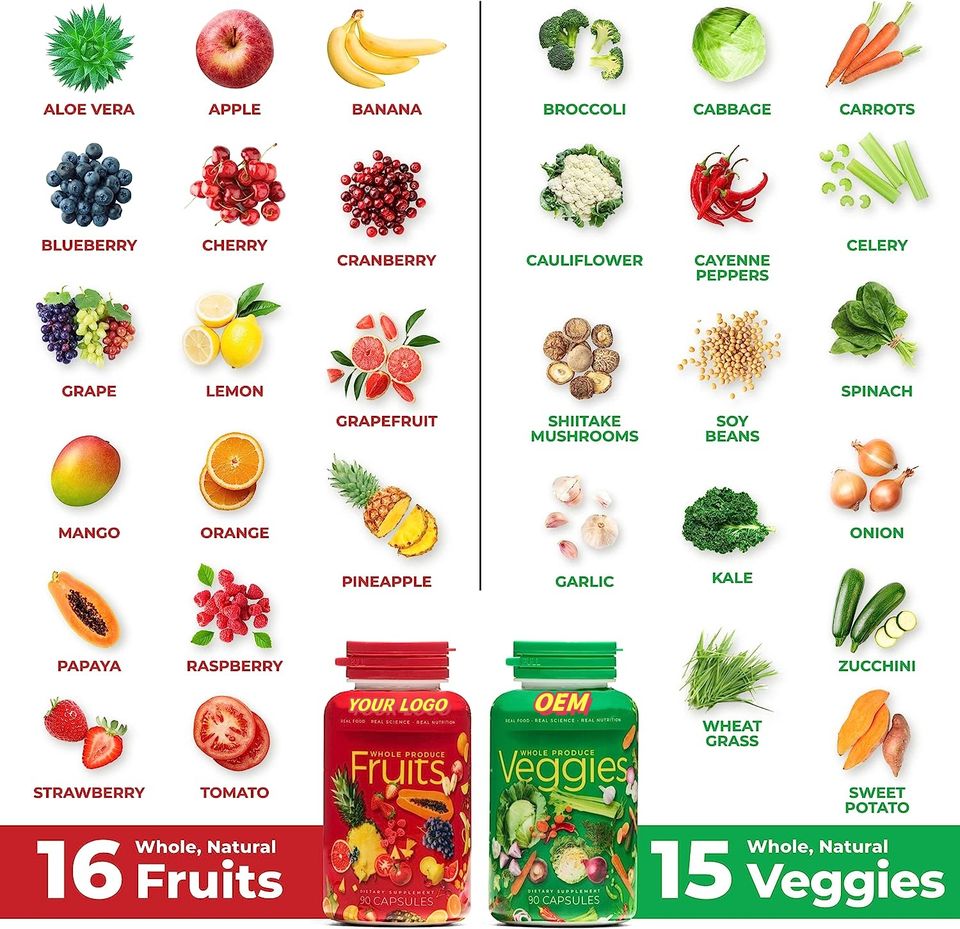 I produttori di alimenti naturali integrano le capsule di frutta e verdura in fibra alimentare forniscono la personalizzazione del supporto nutrizionale