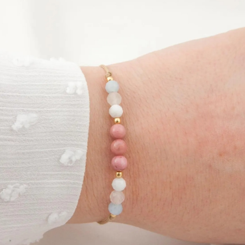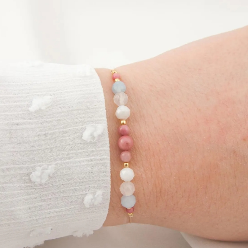 Rose Quartz, Aquamarine, Moonstone, Rhodonite