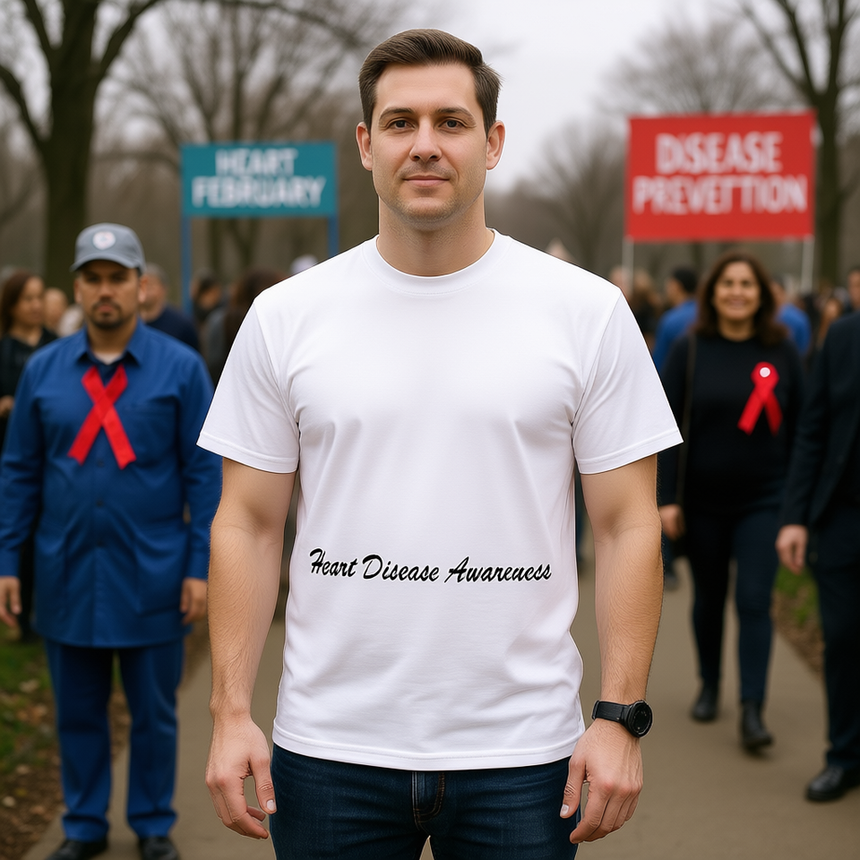 T-shirt per la sensibilizzazione sulle malattie cardiache, campagna del fiocco rosso di febbraio