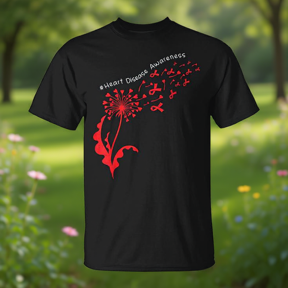 T-shirt per la Consapevolezza della Salute Cardiaca con Design Dente di Leone per il Supporto al Morbo da Insufficienza Cardiaca (CHD) - Abbigliamento Promozionale