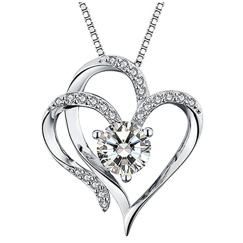 Collana con Ciondolo a Cuore in Argento 925 Placcato Rodio con Cristalli e Strass, Catena a Maglia Quadrata, Gioiello Romantico da Donna per Fidanzamento