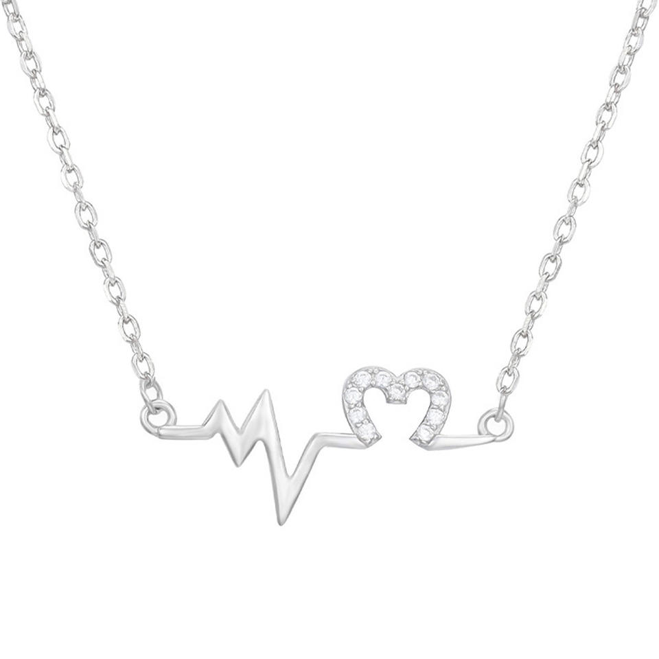 Collana con Ciondolo a Forma di Cuore Pulsante in Acciaio Inossidabile Placcato Rodio con Zirconia Cubica, Design Minimalista per Uso Quotidiano, Regalo Unisex