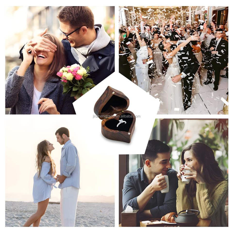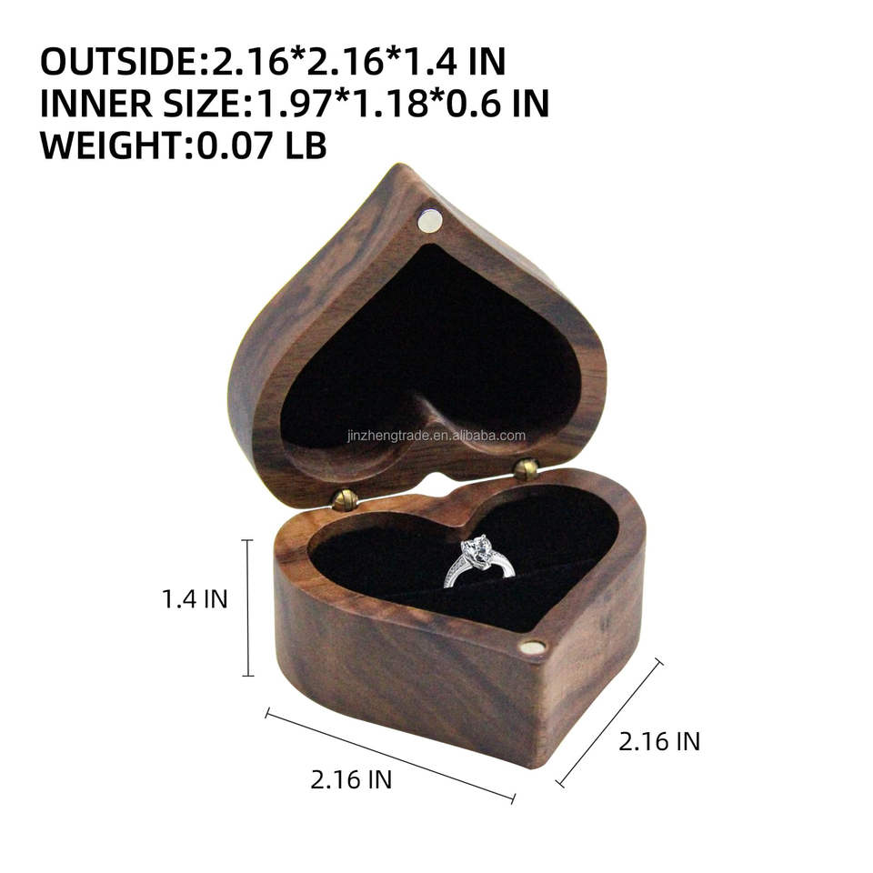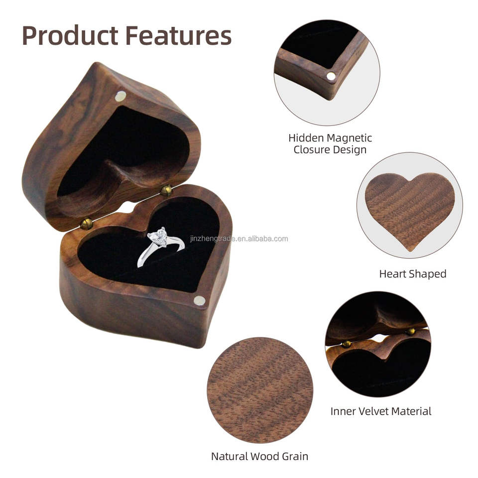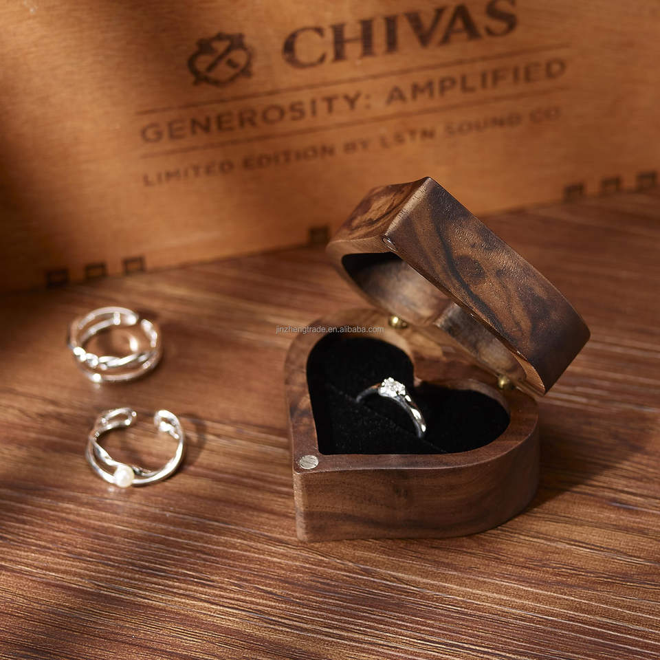 A forma di cuore antico anello di diamante scatola di stoccaggio Set anello di fidanzamento supporto con singolo Slot scatola di legno anello