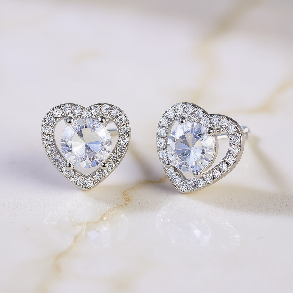 Heart-Shaped Copper Crystal Stud Earrings White Gold Plating Women Romantic Wedding Jewelry Claw Setting Rhinestone Model E784