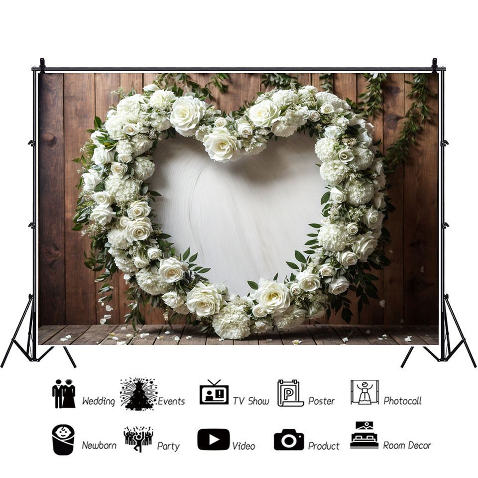 Heart Shaped Flowers and Vintage Wood Grain Photography Background - Flower Background for Weddings, Engagement , Birthday Party