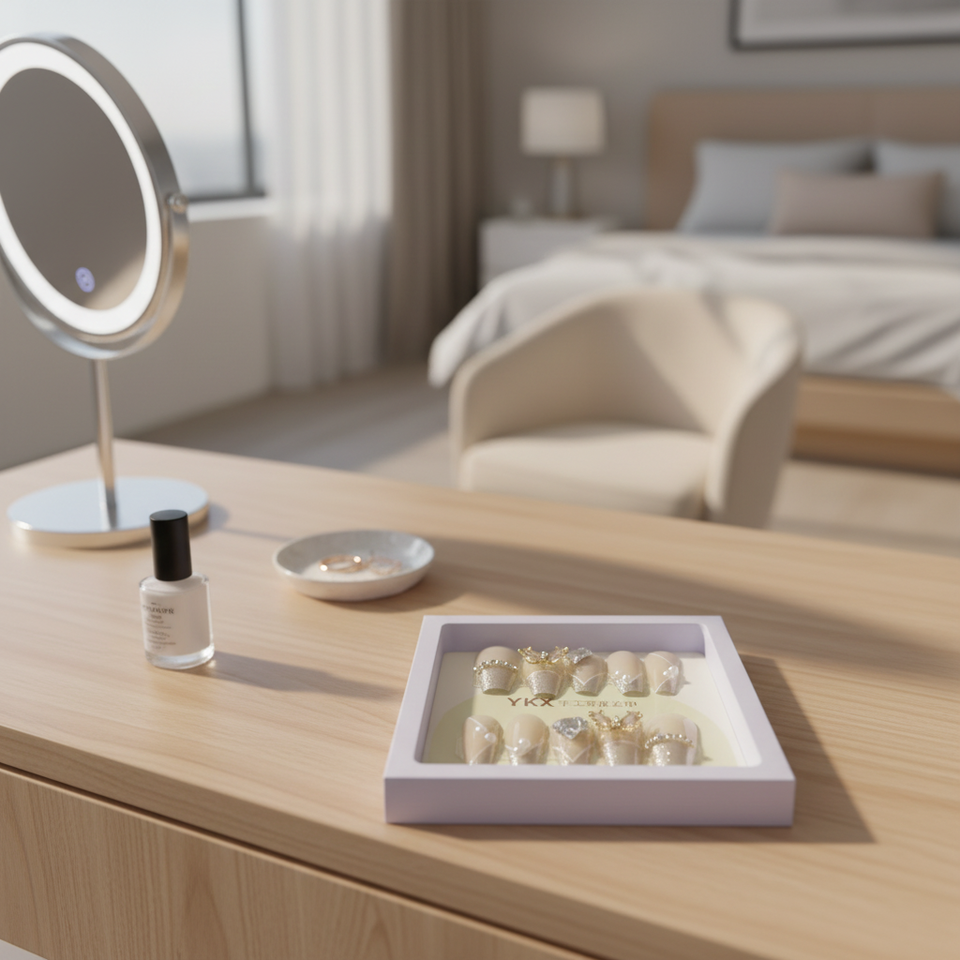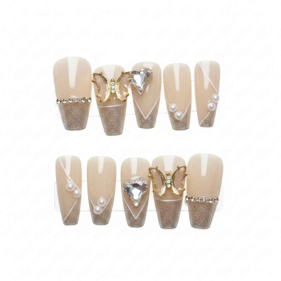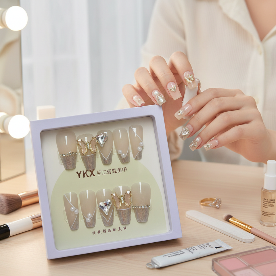 Unghie finte a forma di cuore con diamanti per una manicure veloce e temporanea