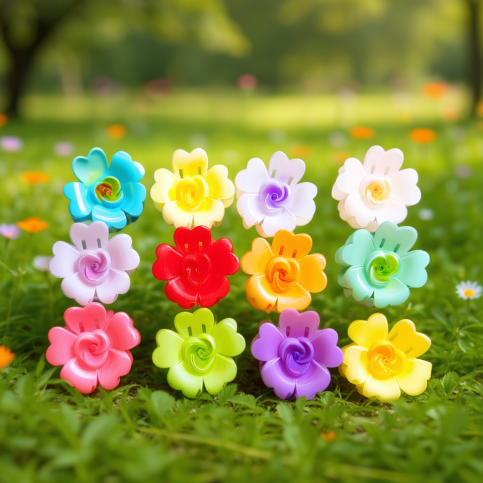 Fermaglio per capelli Angelina a forma di cuore con petali, 7,5 cm, design floreale colorato, per donne e ragazze, stile casual dolce, accessorio per capelli in plastica