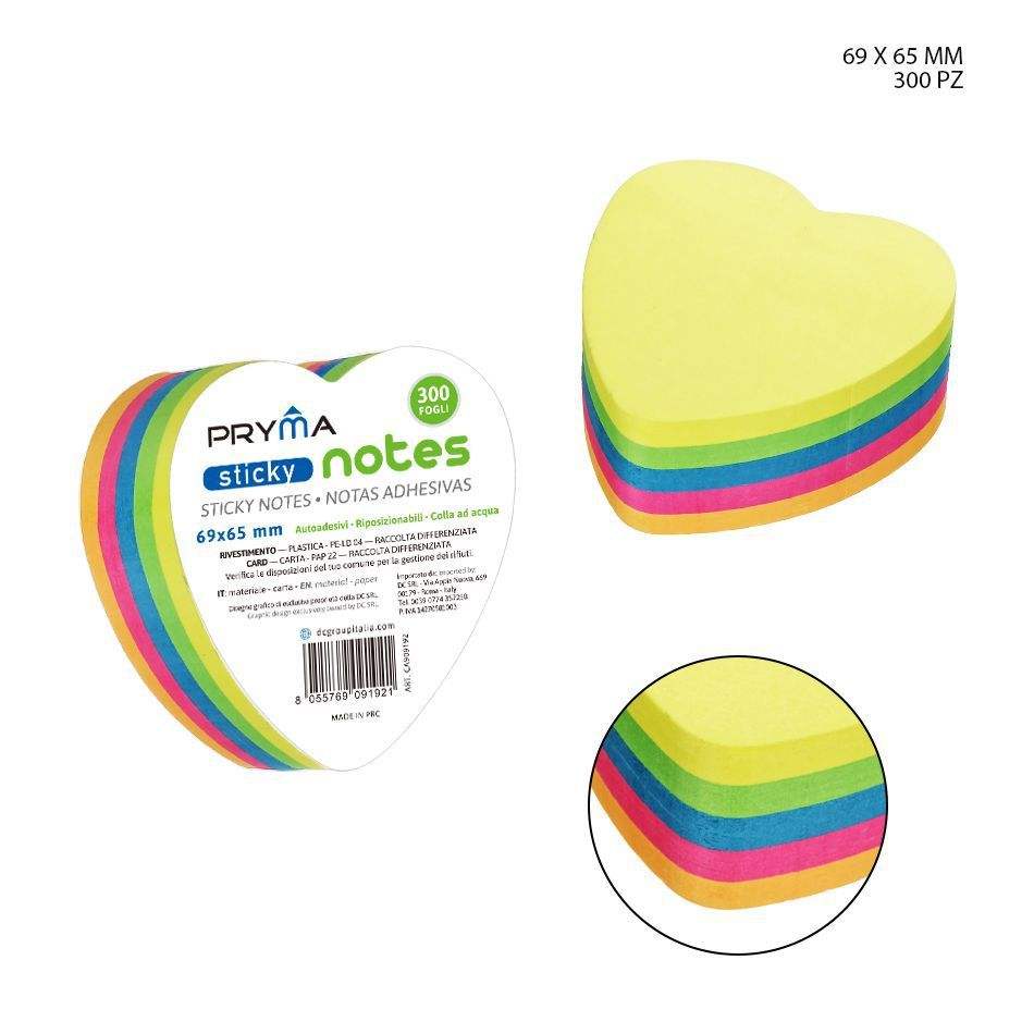 Nota adesiva a forma di cuore 69x65mm 300 fogli fluorescenti per ufficio e cancelleria