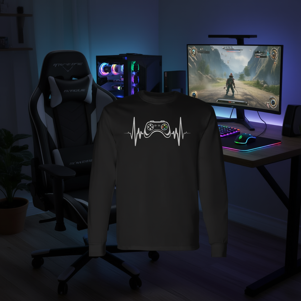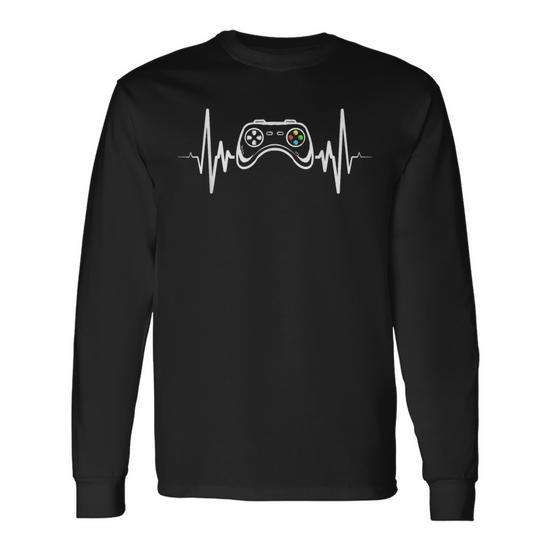 T-shirt a maniche lunghe con controller di gioco Heartbeat, regalo per giocatori