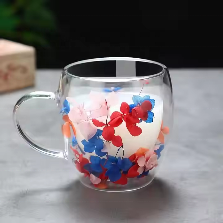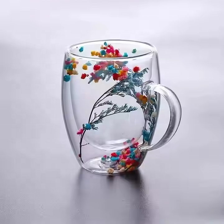 Resistente al calore 300ML doppia parete tazze da tè in vetro chiaro fiori secchi tazza da caffè con manico per caffè Espresso e Latte