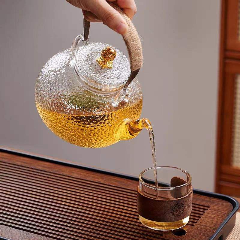 Set da Tè Kung Fu in Vetro Resistente al Calore con Manico in Vetro e Teiera per Infusione di Erbe