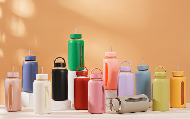 Nome del prodotto:Bottiglia d'Acqua in Vetro con Rivestimento in Silicone