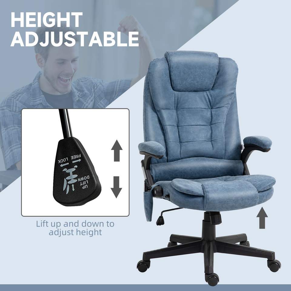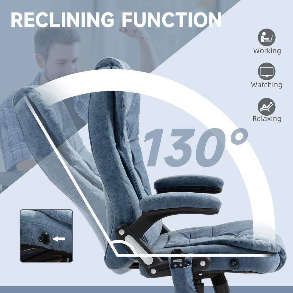 Heated Reclining Office Desk Chair with 6 Vibration Points Blue Armrest and Remote Massage Office Chair