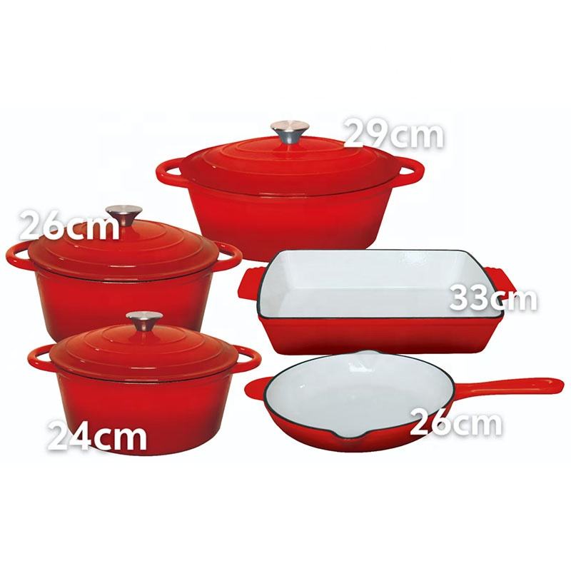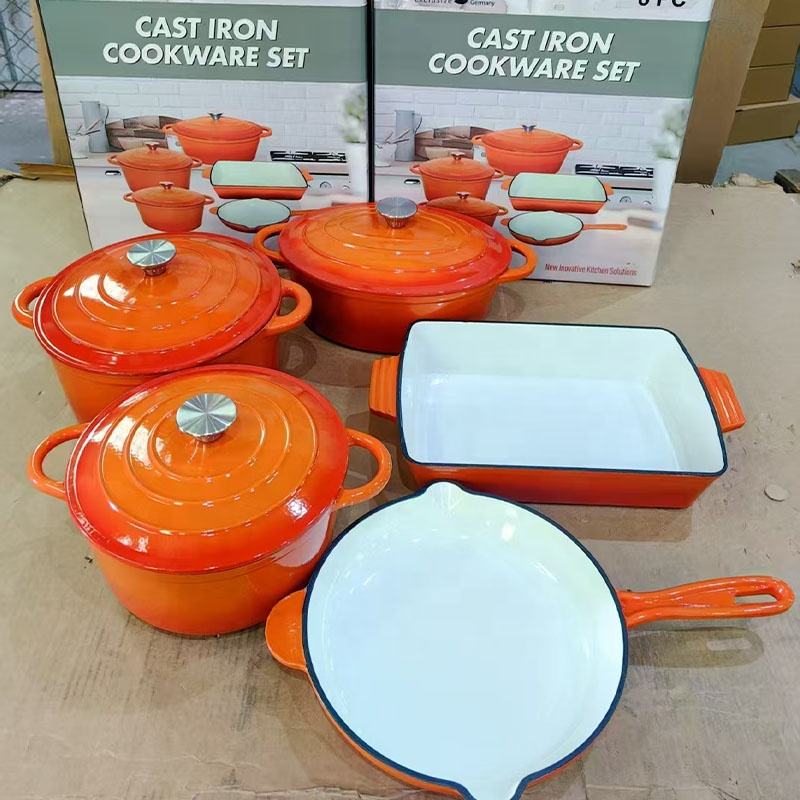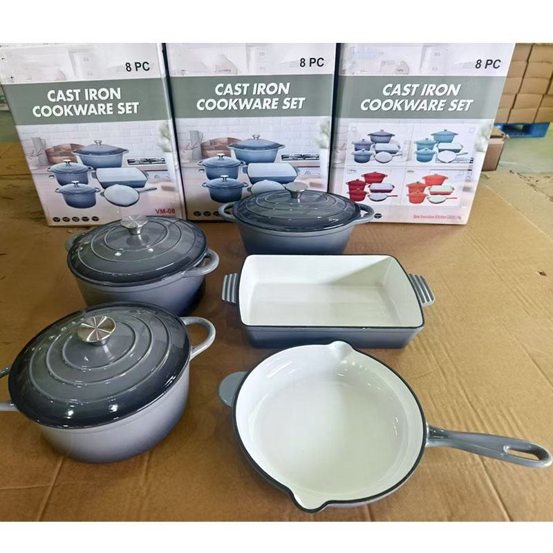 Set di Pentole Pesanti per Cucina, Ordine Minimo 1 Set, 8 Pezzi in Ghisa Smaltata Antiaderente, Pentole Tradizionali Robuste