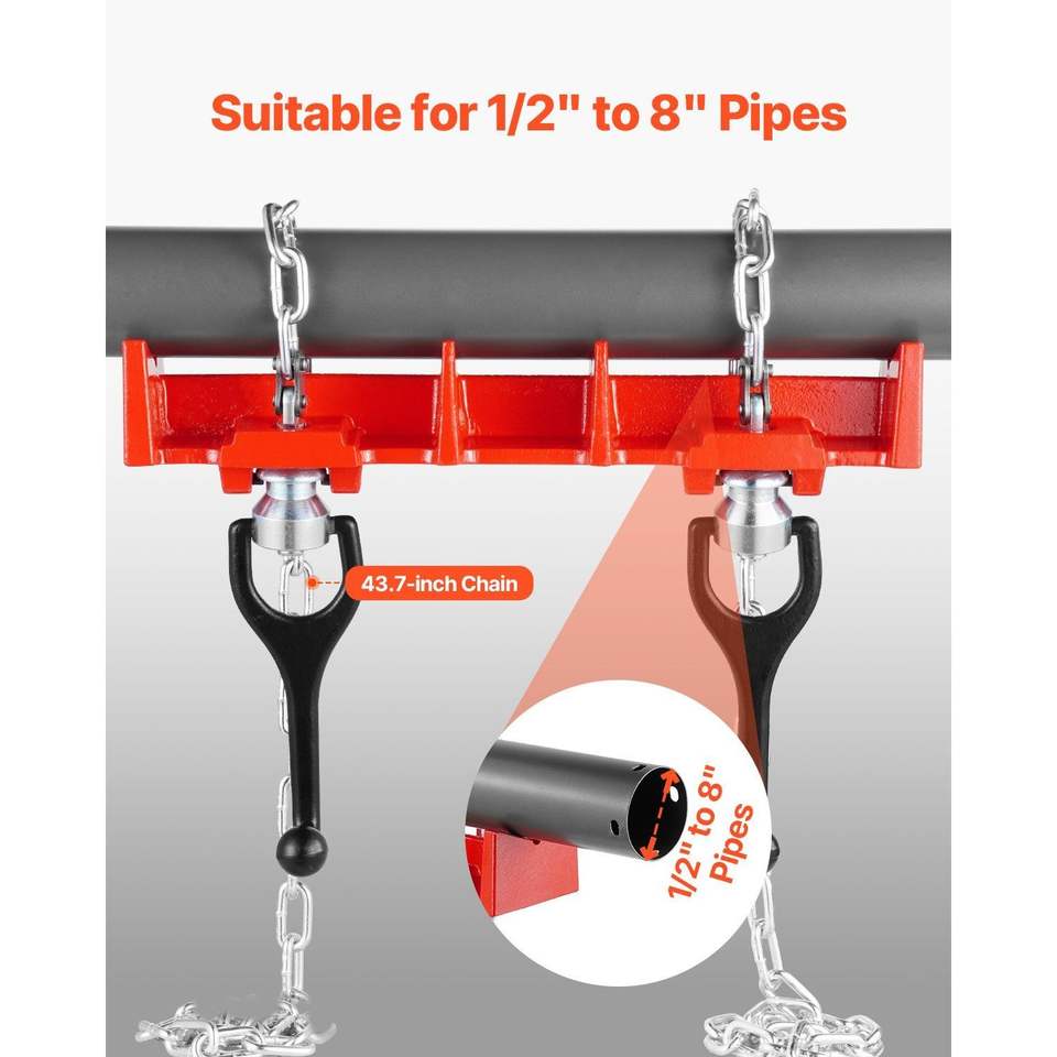 Morsa per saldatura di tubi in ghisa resistente da 1/2 a 8 pollici con doppie catene e maniglie a manovella per vari tubi modello D0100X308WP