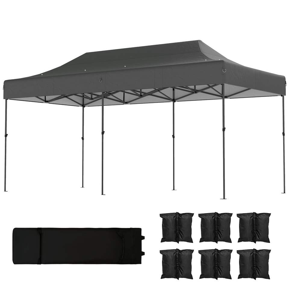 Tenda Pop-Up Resistente 10 X 20 Piedi UPF50+ con Borsa con Ruote, Grigio Scuro, Riparo Istantaneo Portatile per Esterni