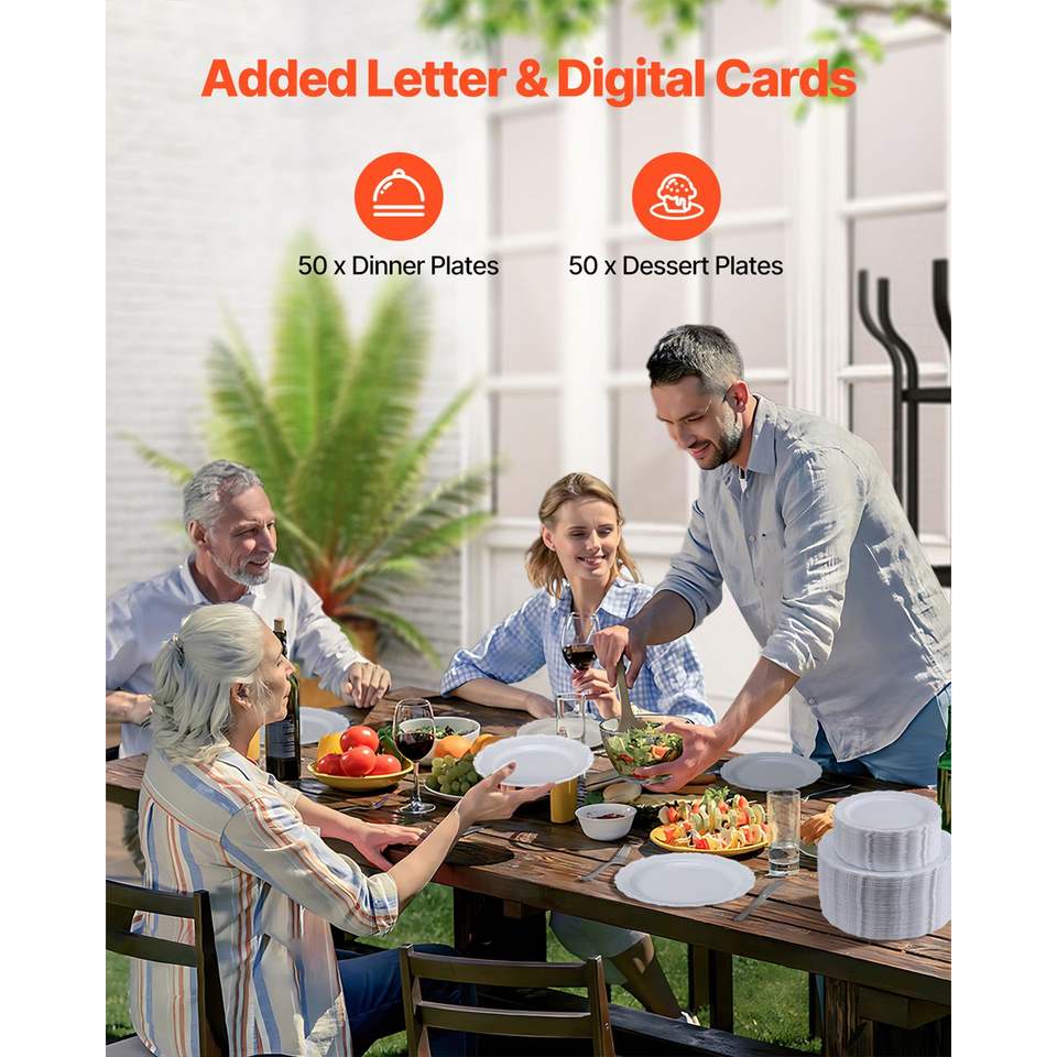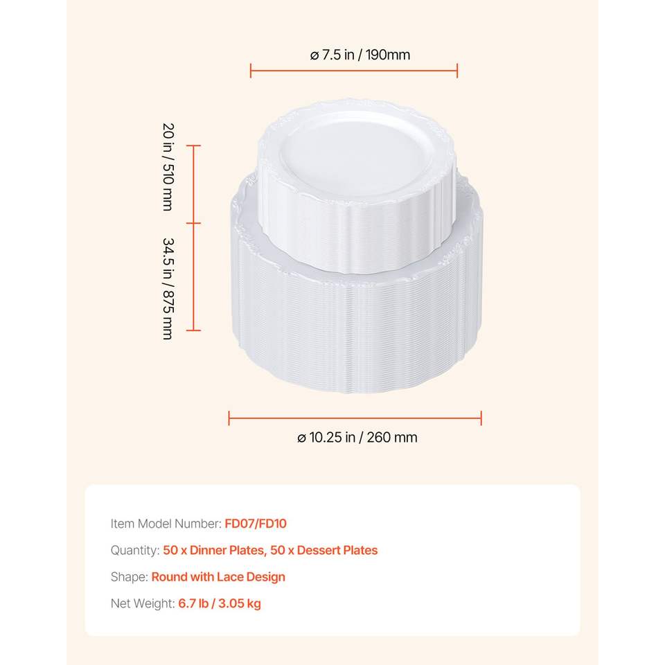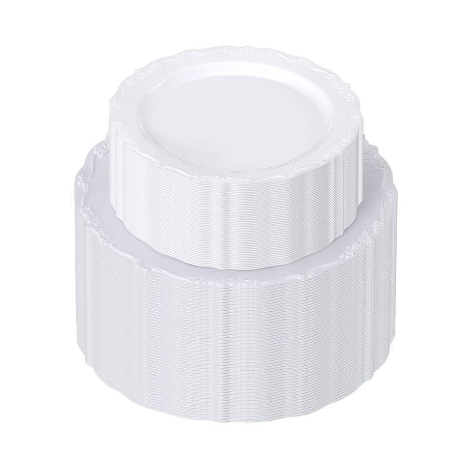 Piatti di Plastica Bianchi Monouso Resistenti da 100 Pezzi, 25 cm, 50 Piatti di Plastica da 25 cm